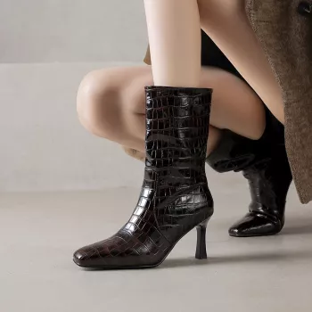 Autumn Slip-On Mid-Calf Leather Boots for Women